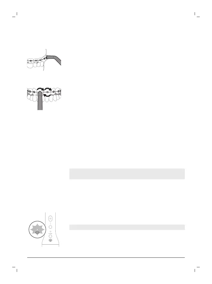 교정기 브래킷 주위를 세정하려면 각 브래킷 위에 노즐