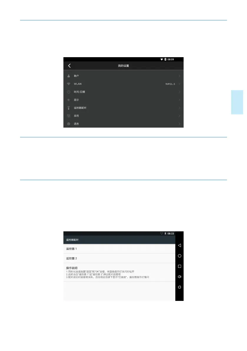 设置菜单界面,点击“遥控器配对”选项进入配对界面,可以查看遥控器是否配