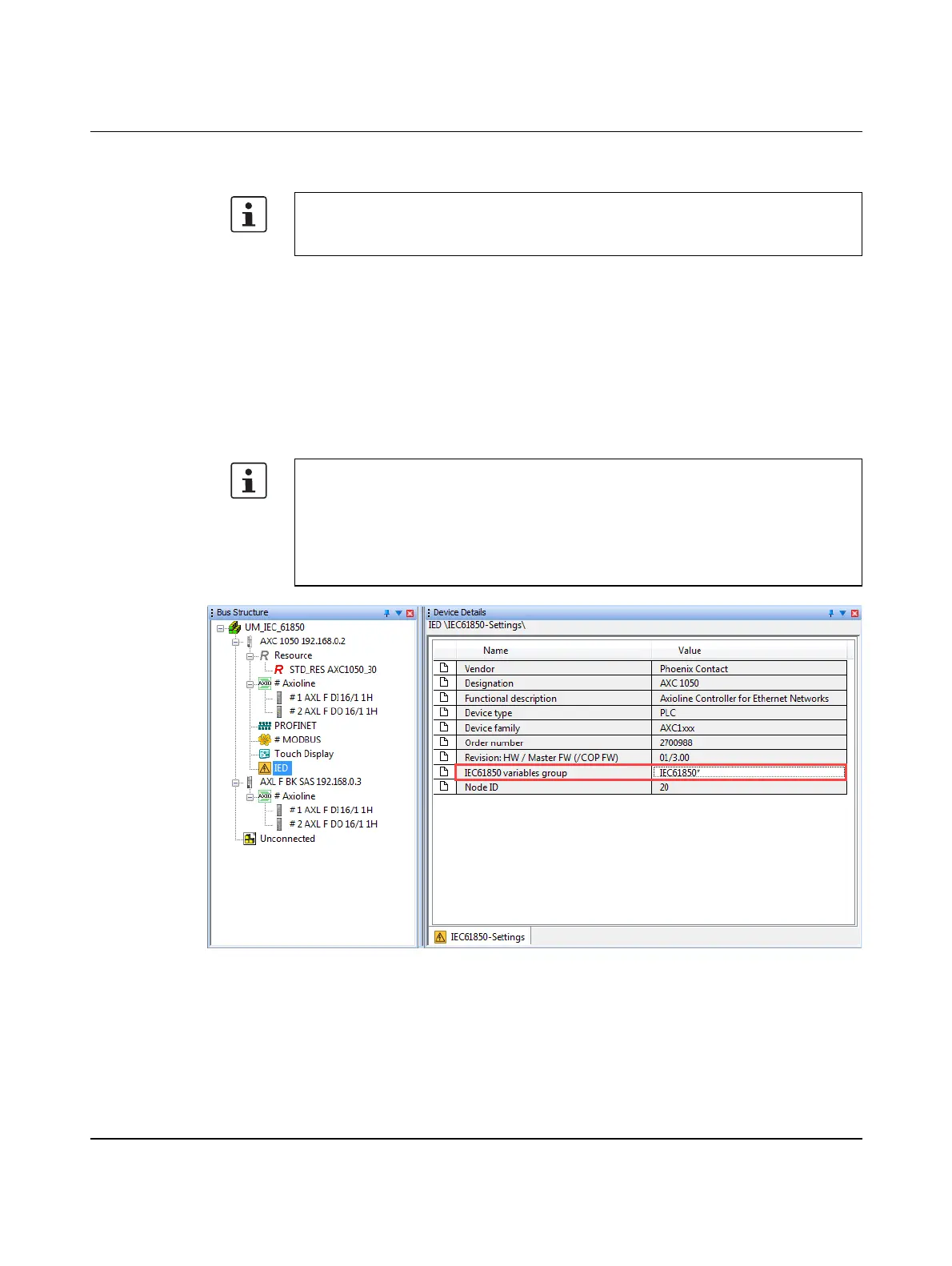are necessary for the IEC 61850 communication of a Phoenix Contact IED.