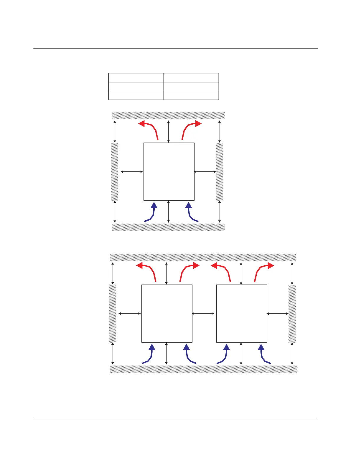 Figure 4-2 Airflow, side-by-side horizontal installation/installation without clear-