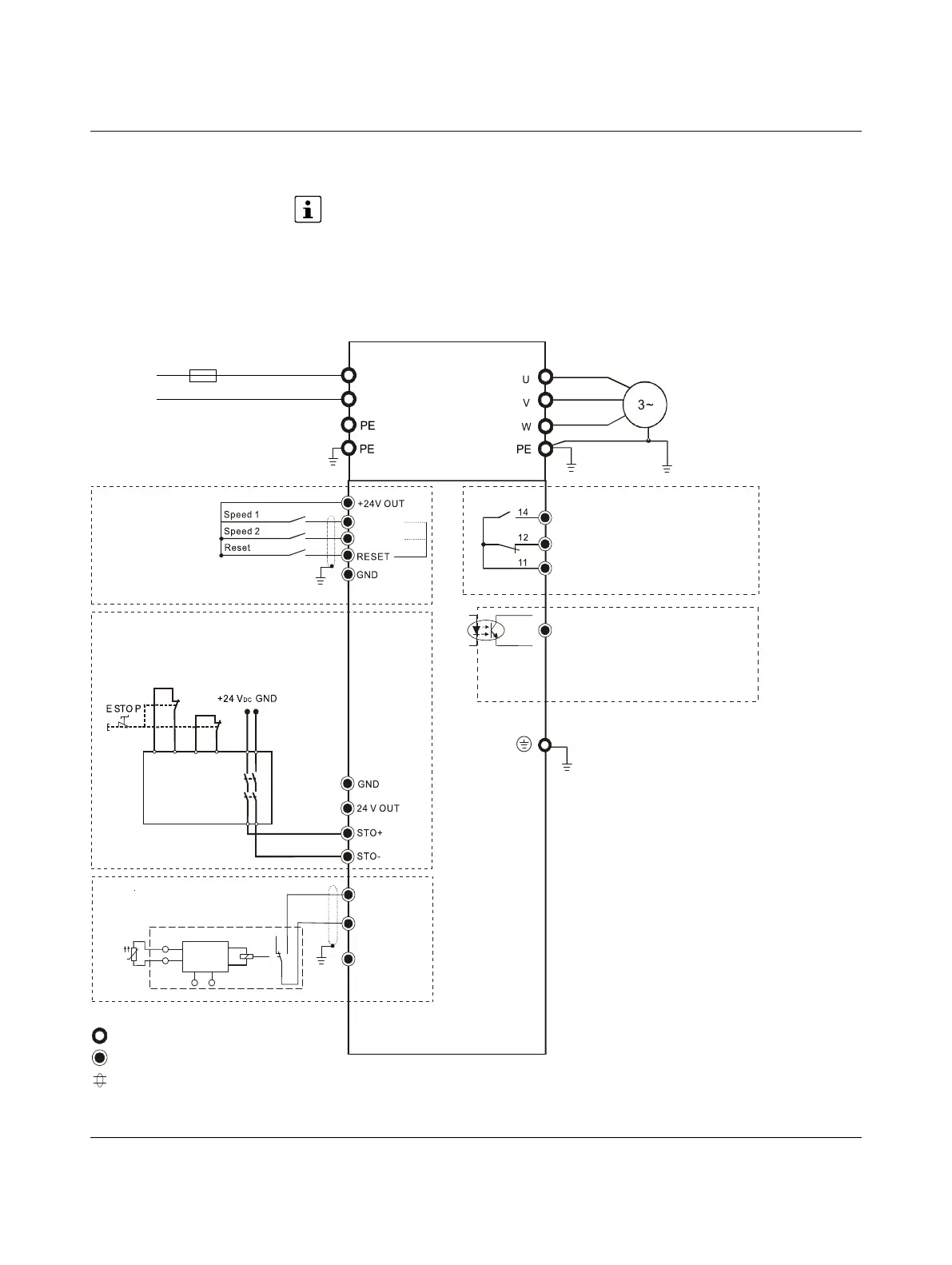 between GND and STO-. When using the safety function, remove this STO bridge.