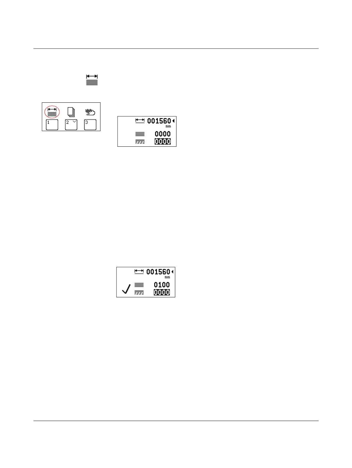 Zuschnitt erfolgreich Wenn der Zuschnitt beendet ist, steht die Restanzeige auf „0000“ und es wird ein Haken