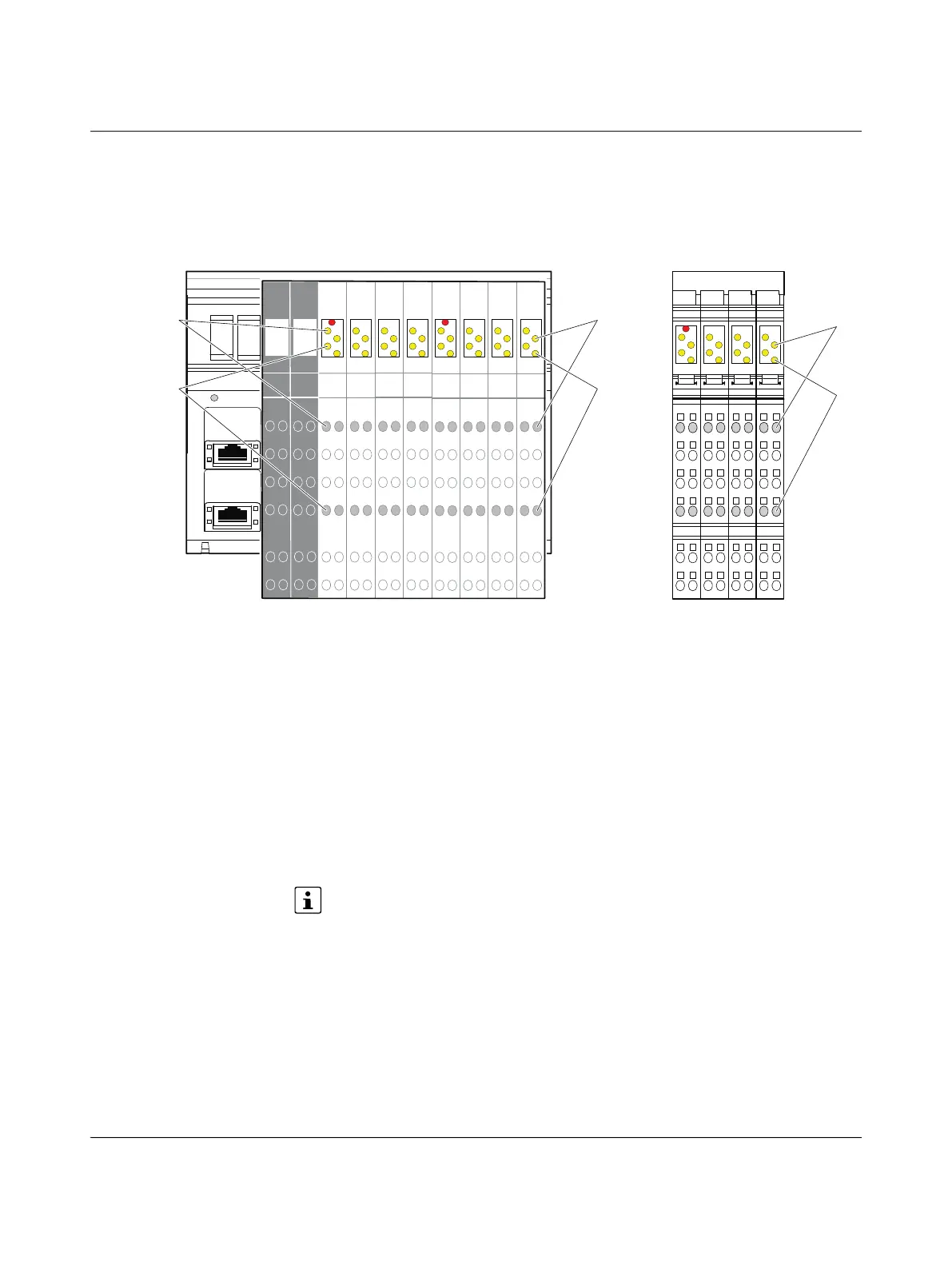 On the module in Figure 9-8, e.g., with 4/2, LED 2 on slot I4 is indicated. According to the