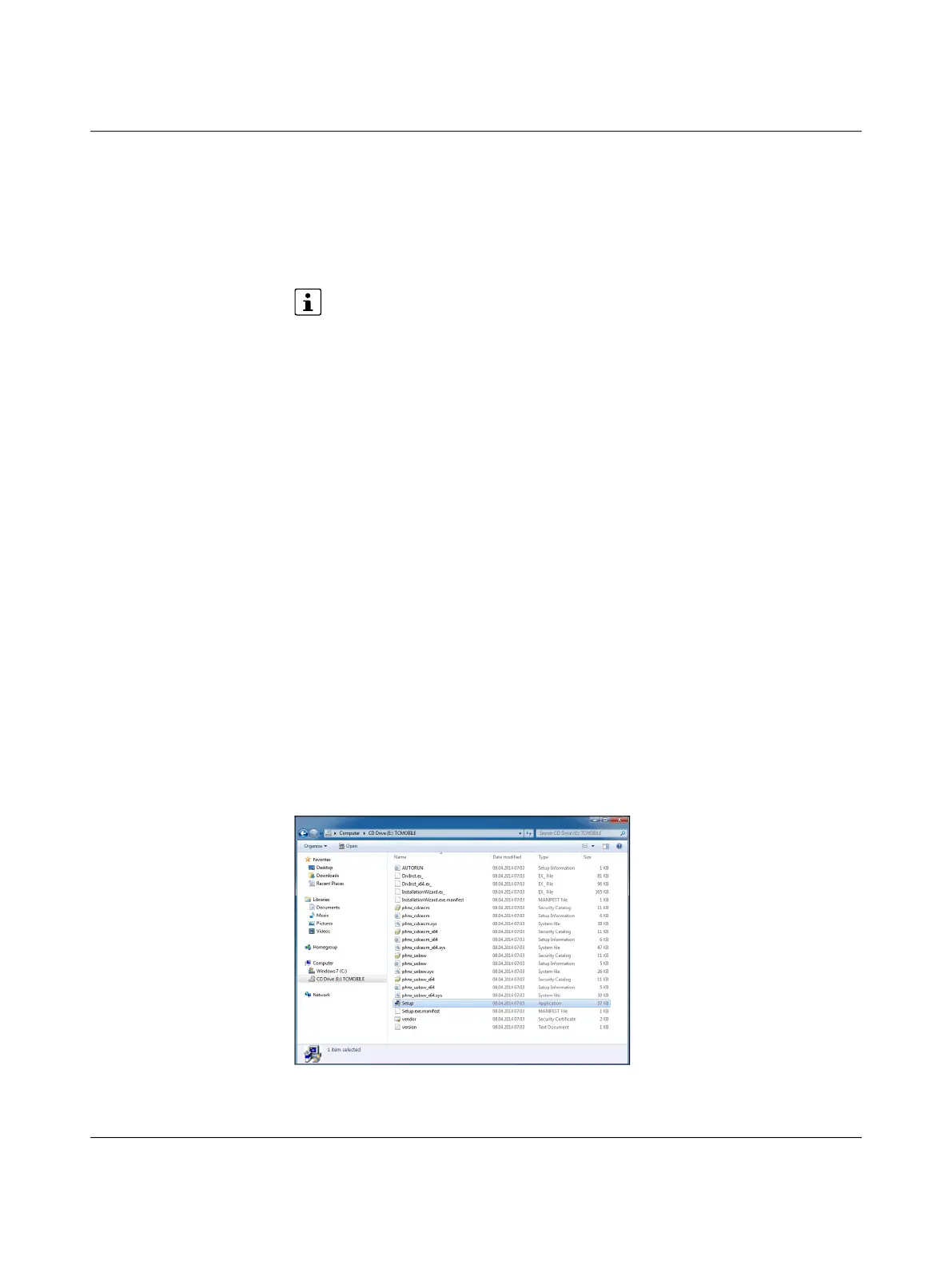• Start Setup.exe from the virtual CD drive. The driver for the device will be installed.