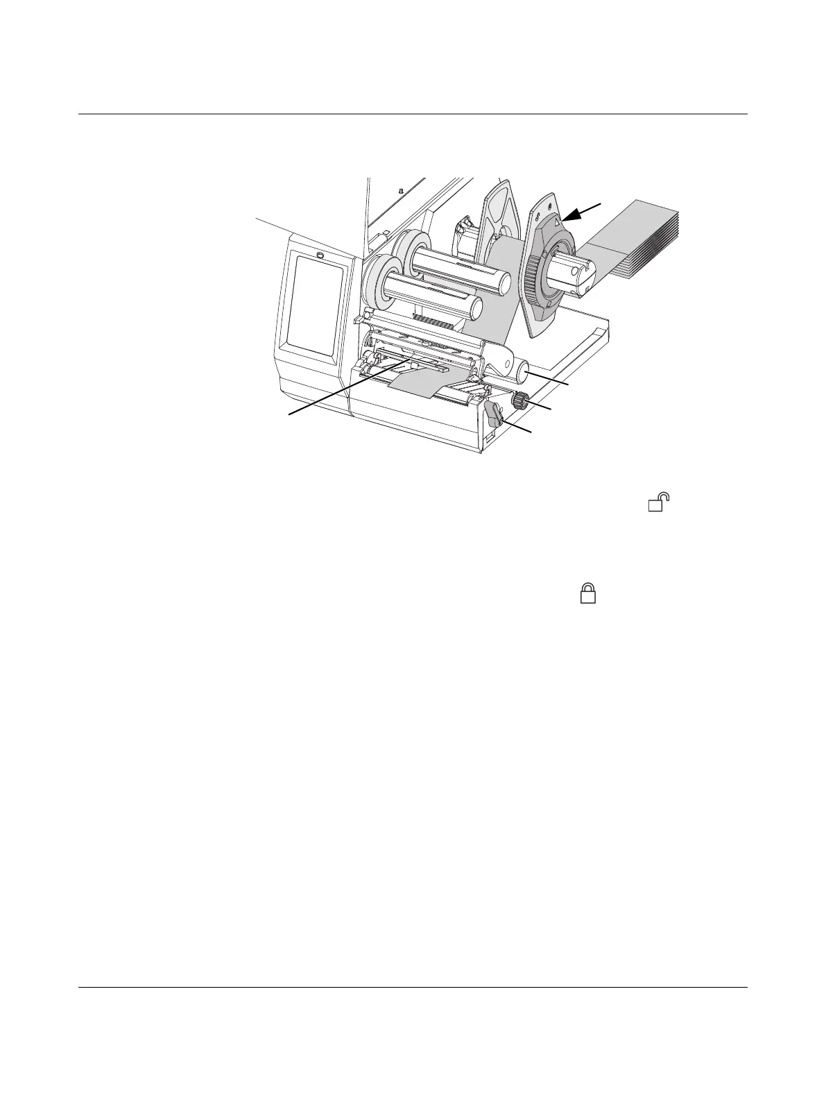 • 引导Leporello标签穿过卷材支架的上方
