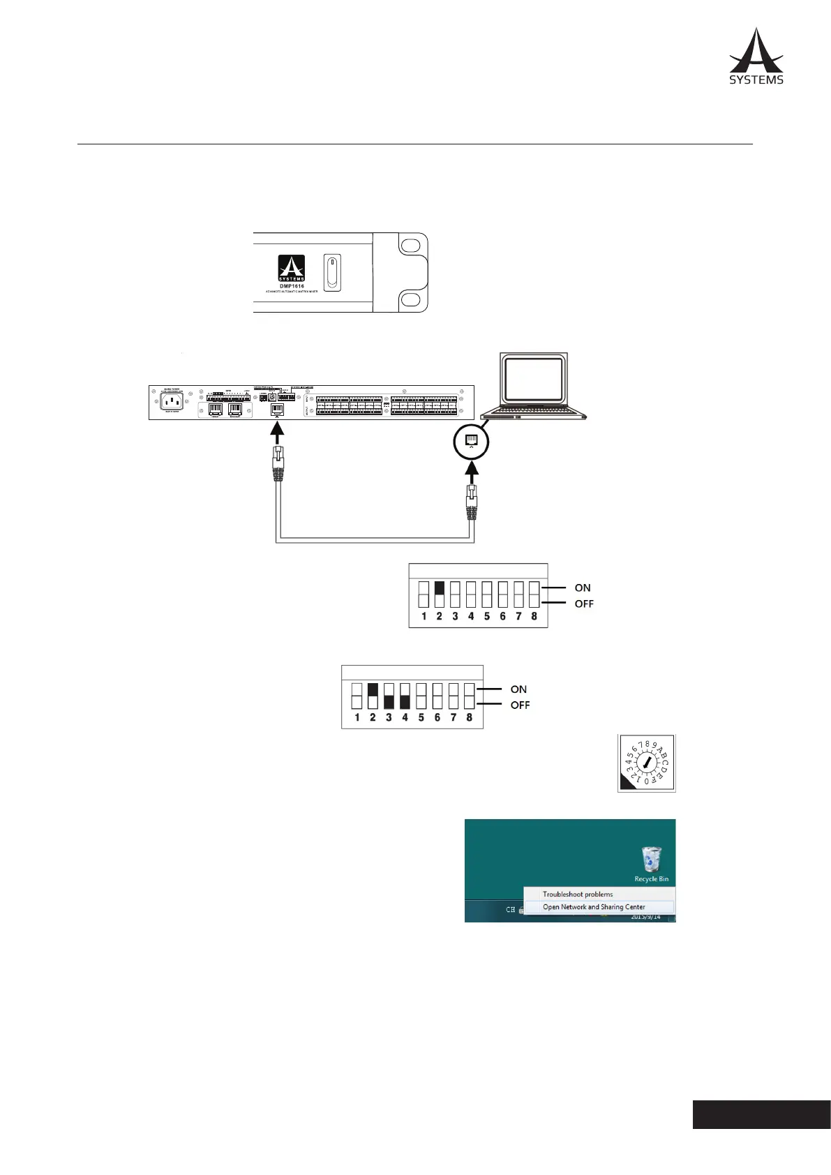 5. Set the UNIT ID rotary to 1. This will set the DMP1616’s internal IP address to 192.168.0.1.