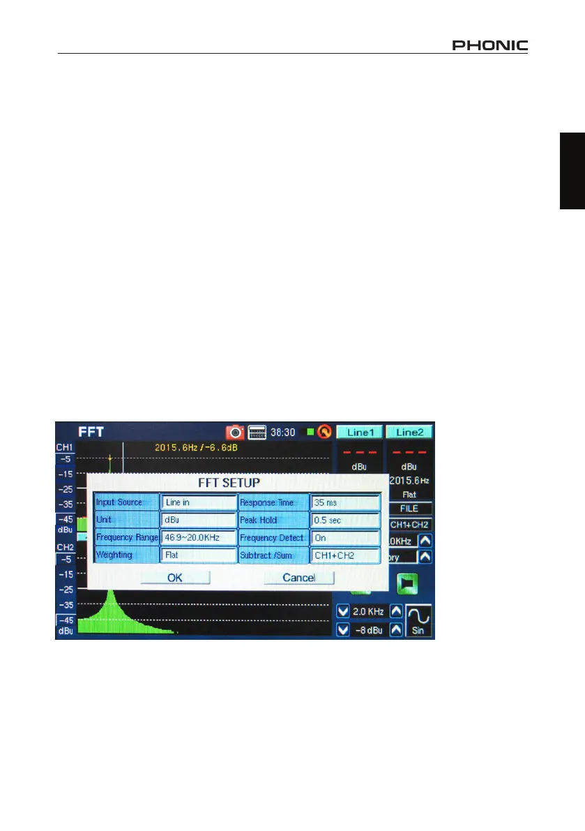 4. Also set the response time, and turn the peak hold and frequency detect on or o as required. (gure