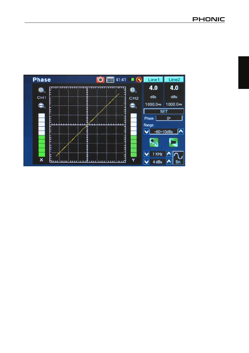 6. The actual phase of the signal will be displayed to the right of display. The phase is displayed and