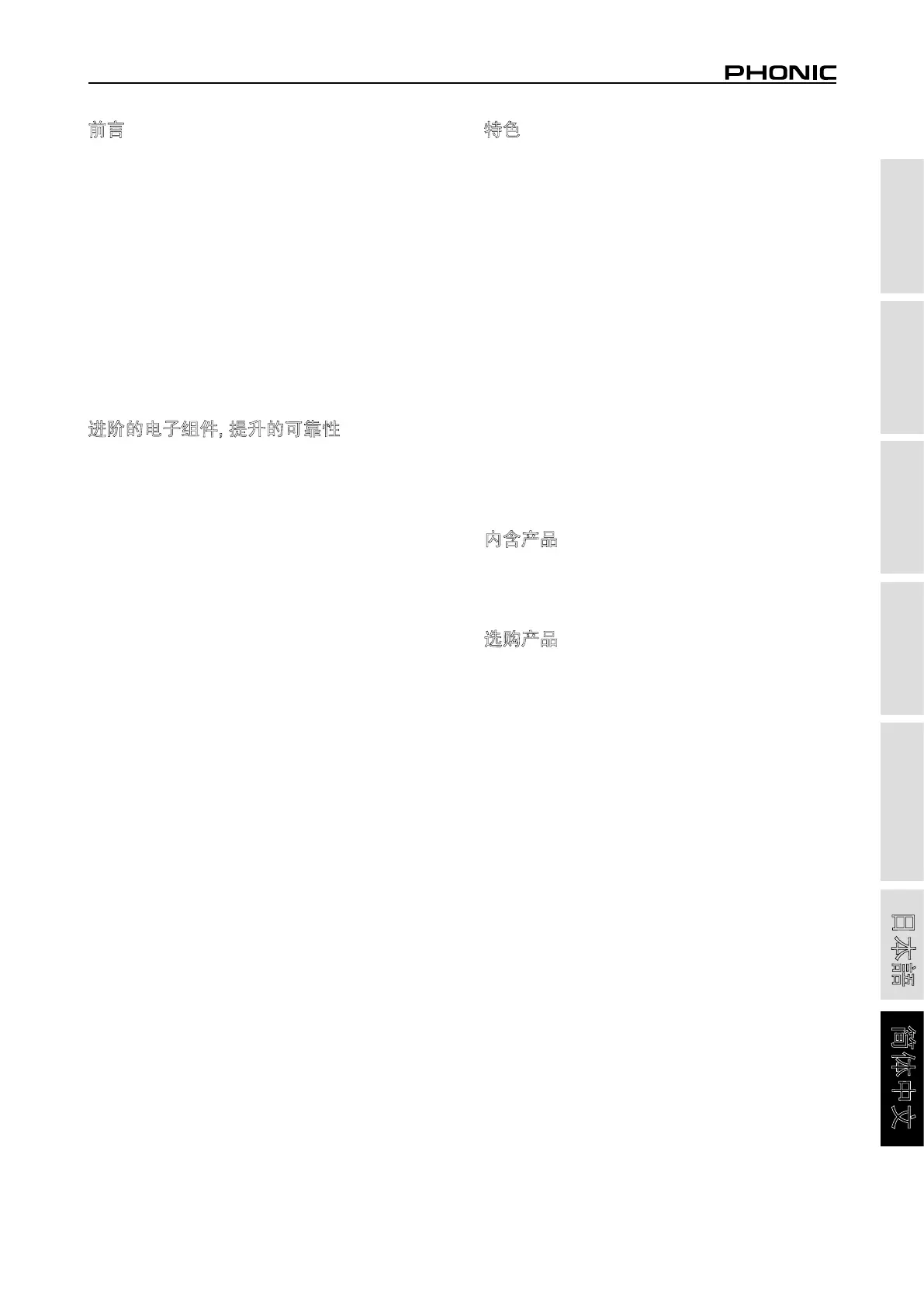 恭喜您购买了Phonic最新的可电池供电扬声器系统Safari 3000.