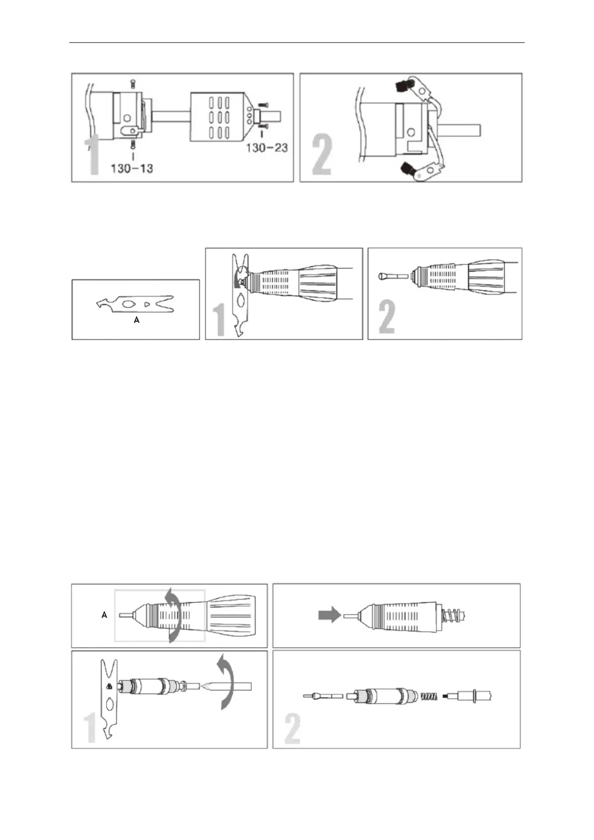 1. Svitare il bullone 130-23 e svitare il bullone 130-13 fissato nella spazzola di carbone.