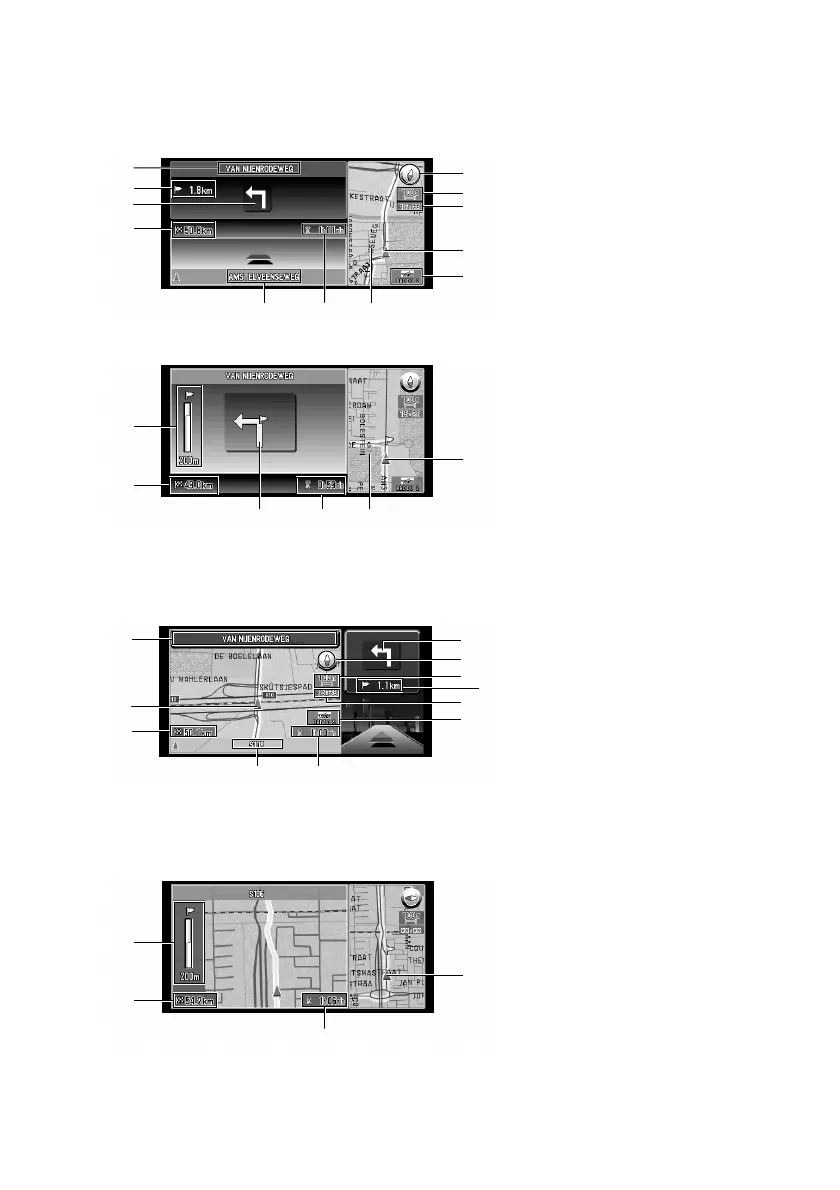 nadert, zoals een kruising, schakelt het scherm over om de afstand tot en de richting naar het