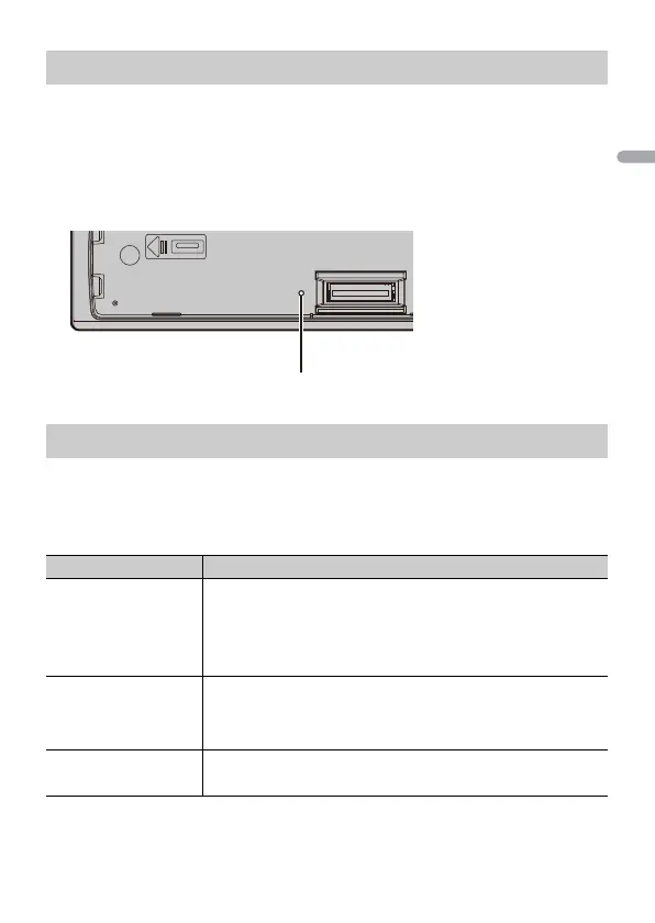 2 Press the RESET button with a pointed instrument longer than 8 mm.