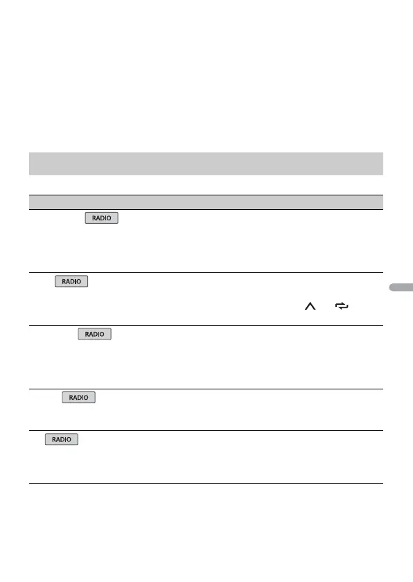 • Las opciones del menú asociadas a iPod de las tablas siguientes no están disponibles para MVH-