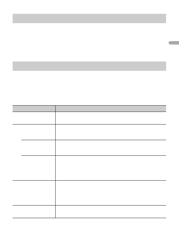 FM STEP Select the FM tuning step from 100 kHz or 50 kHz.