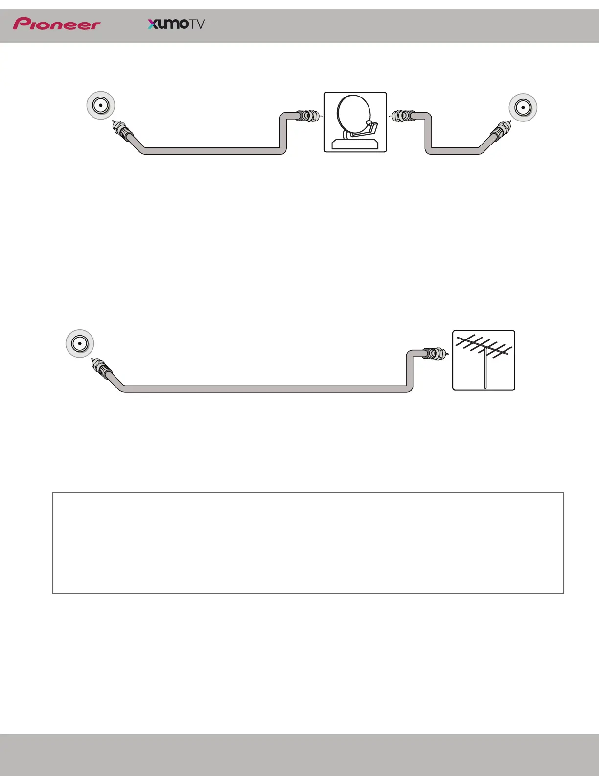 2 Connect a coaxial cable (not provided) to the cable wall jack and to the cable-in jack on the cable or satellite box.