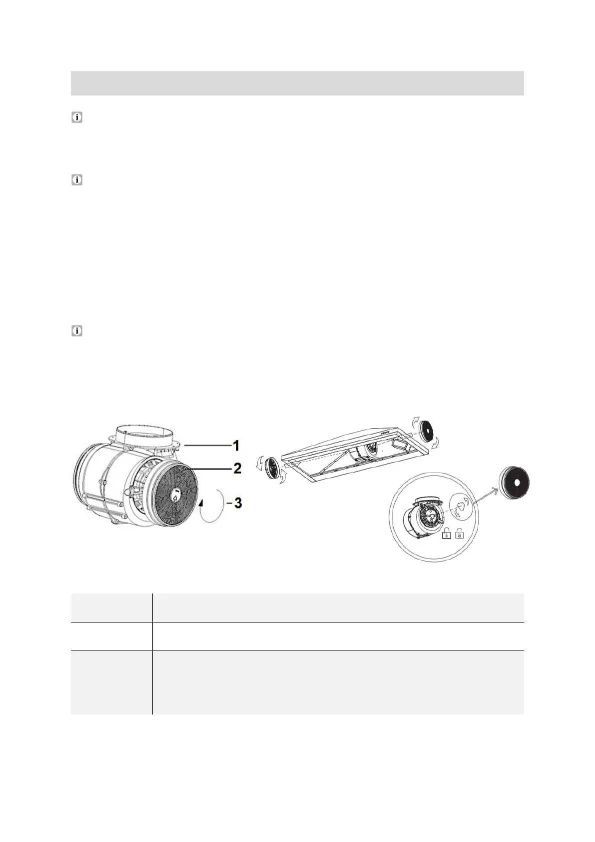9. Place the CARBON FILTER (2) on the motor (1) and turn it clockwise (3) until it is