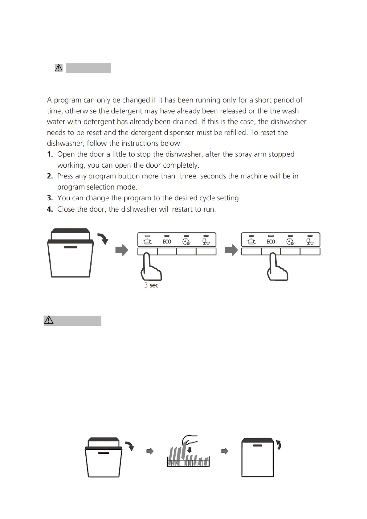 ou can put dishes later in the appliance unless the detergent container has