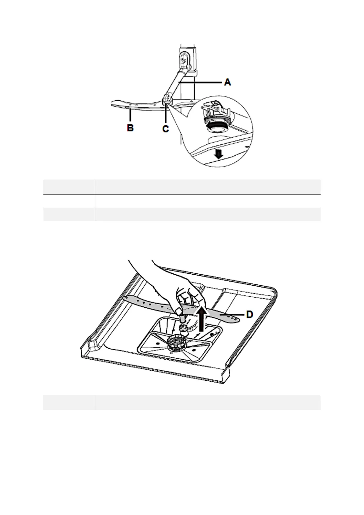 2. Um den unteren Sprüharm (D) zu entnehmen, ziehen Sie ihn nach oben heraus