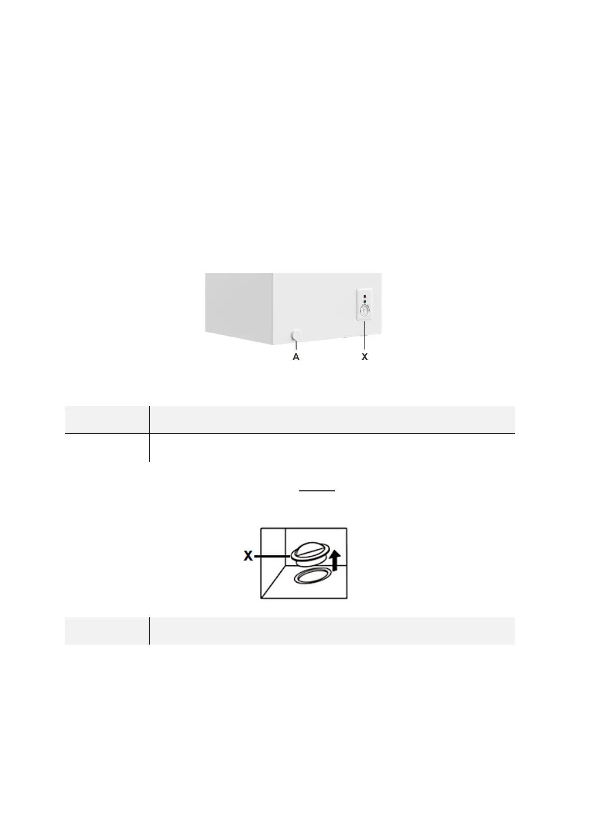 5. Remove the water drain plug (X) inside the freezer (s. fig. below). It is