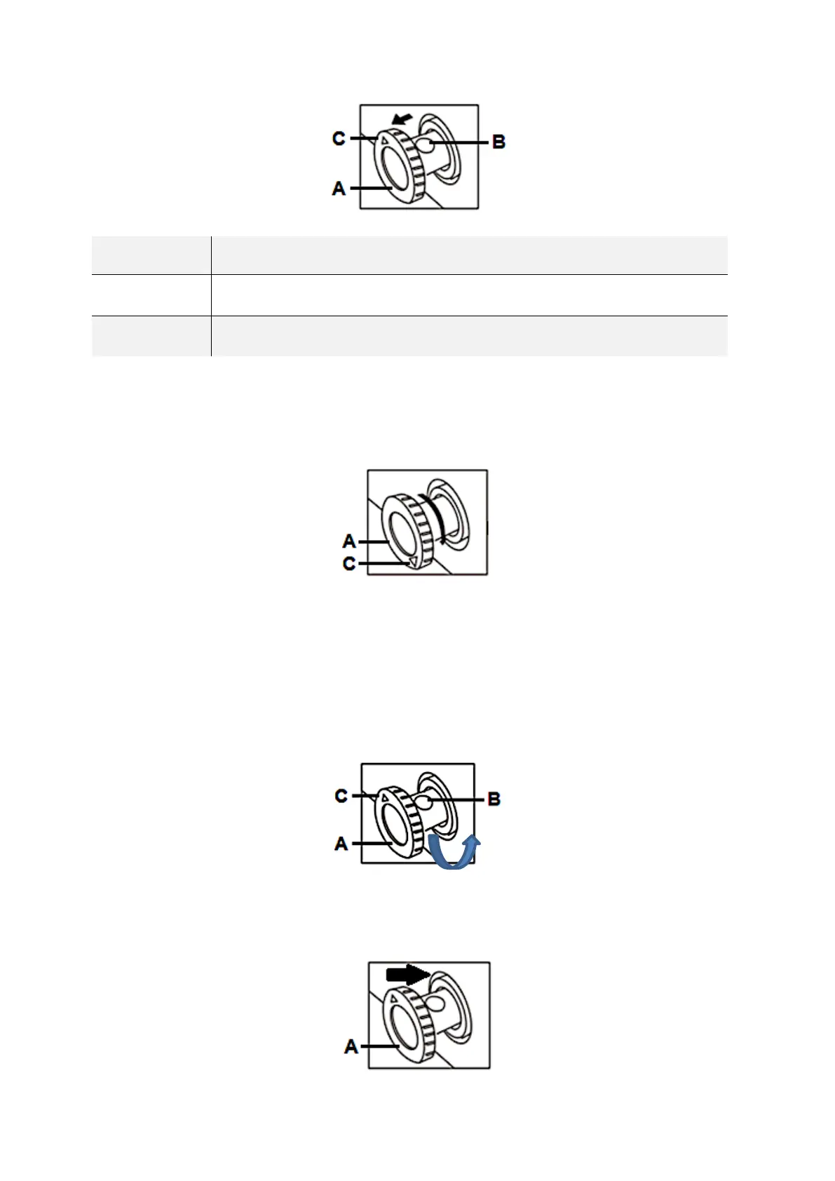 the water drain opening (B) and the marking arrow (C) point downwards (s.