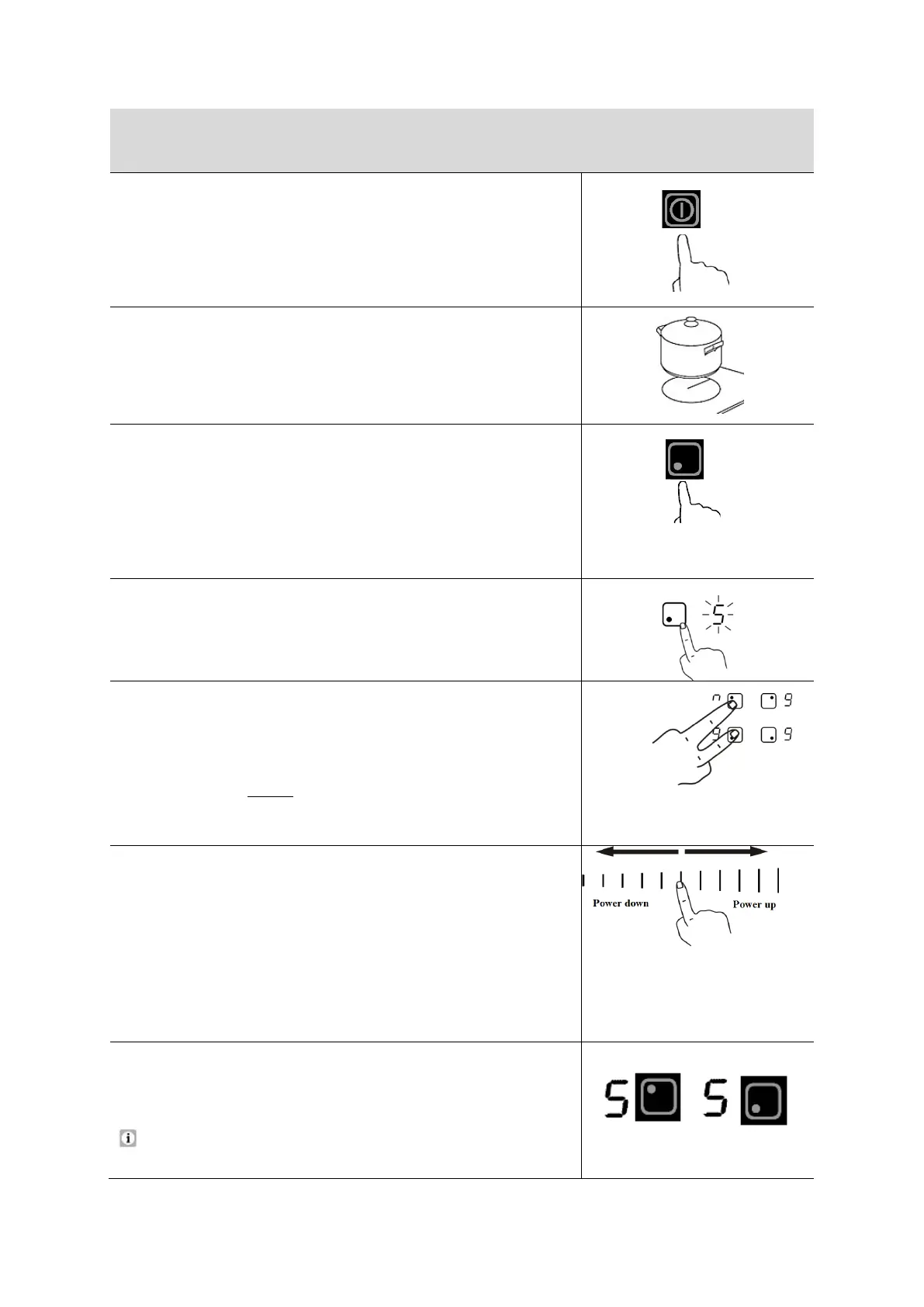 7. Die Leistungsstufenanzeigen der Kochzone 1 und