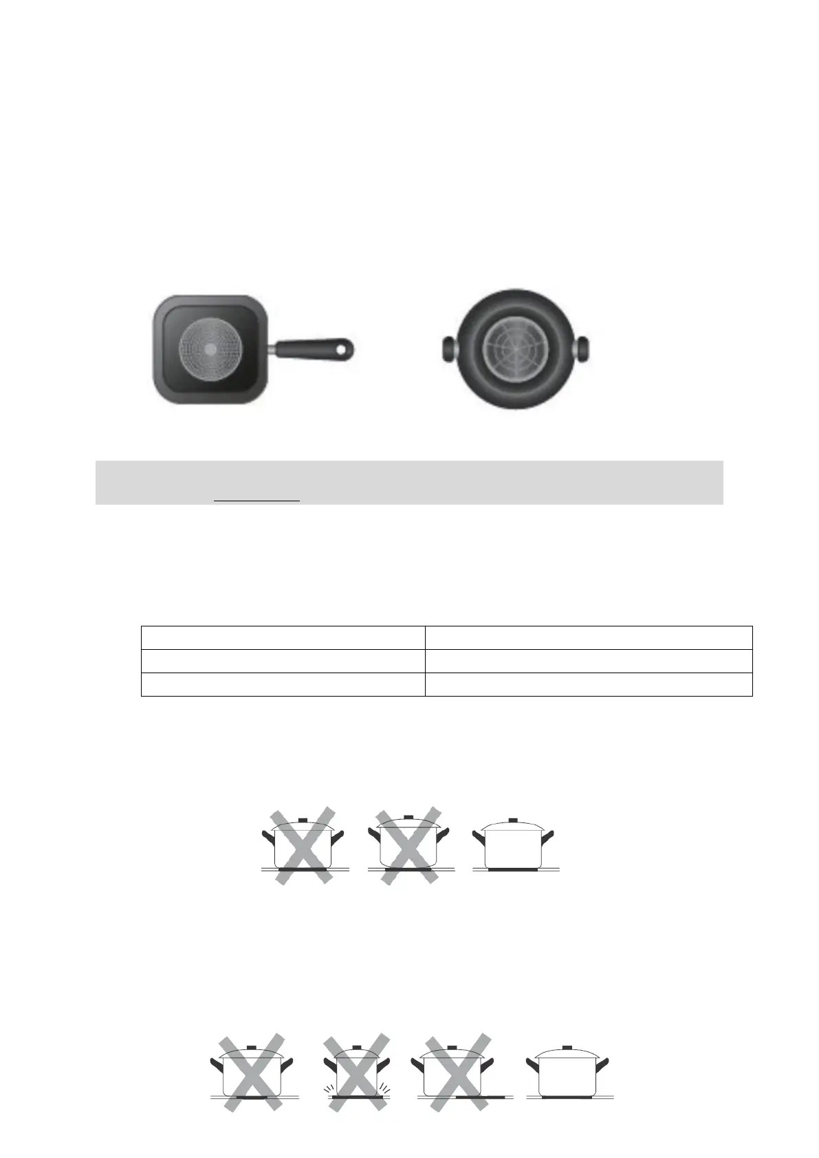 Zentrieren Sie das Kochgeschirr immer auf der Kochzone. Kochgeschirr mit