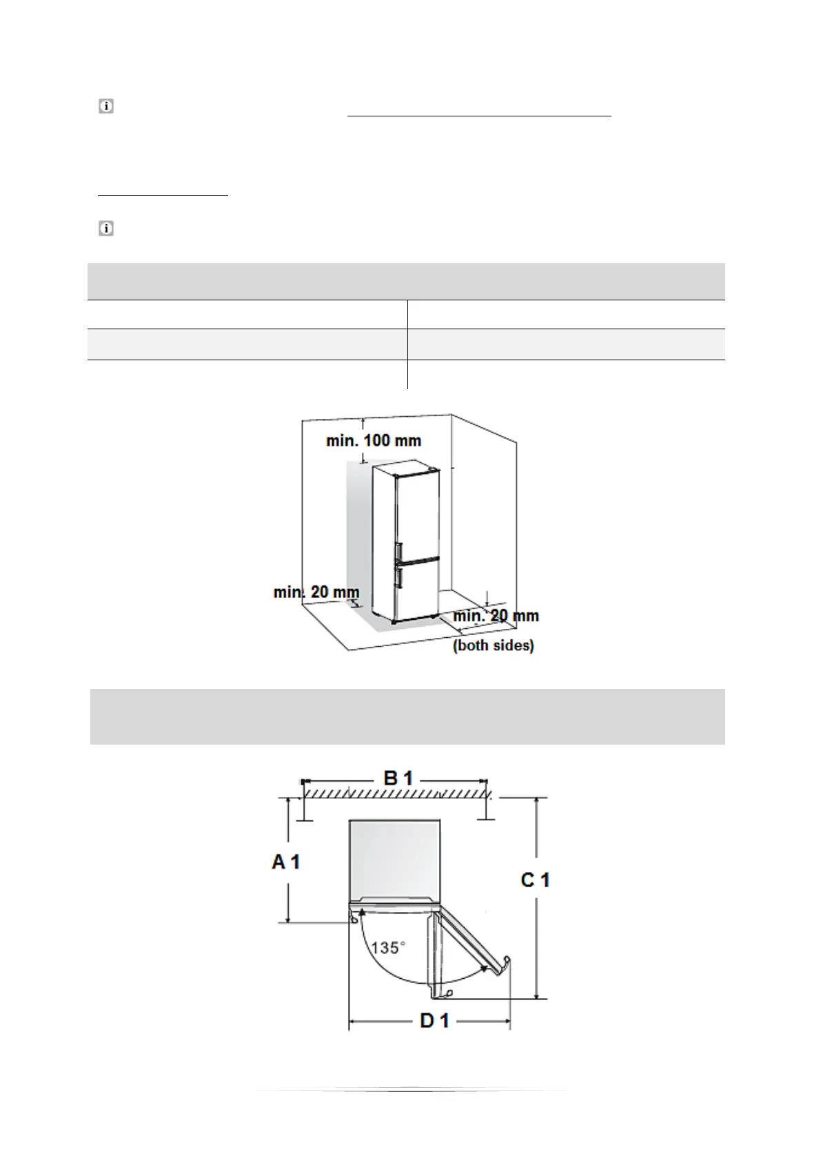 SPACE REQUIREMENT OF THE APPLIANCE INCL. MINIMUM DISTANCES FOR