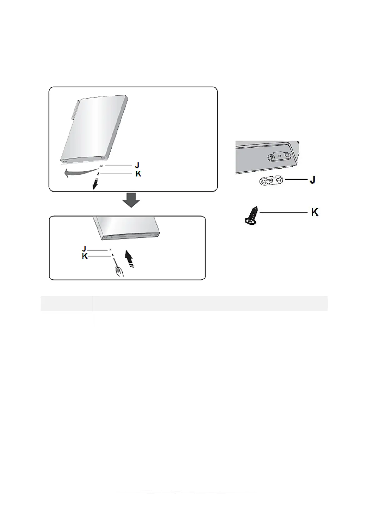 21. Lösen Sie die selbstschneidende Schraube (K) des Türblocks (J) und entnehmen