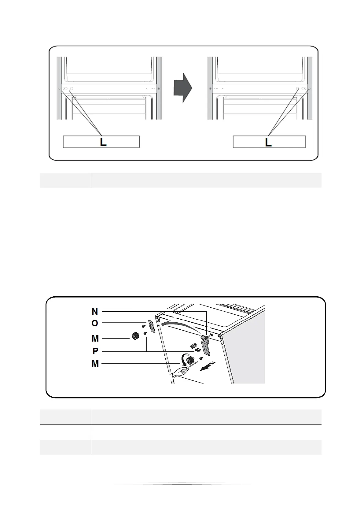 26. Lösen Sie die selbstschneidenden Schrauben (P) des unteren Türscharniers (N)