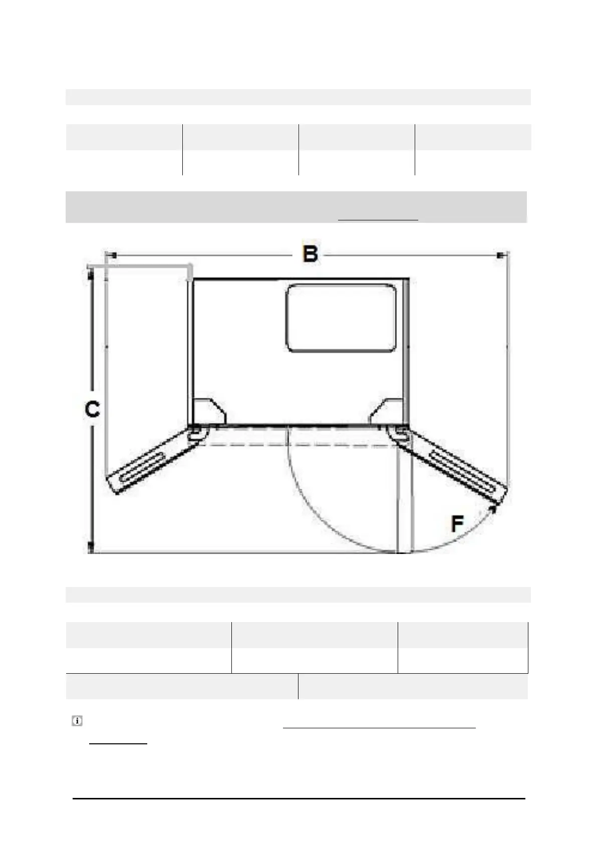 geöffneten Tür(en) entsprechend des Türöffnungswinkels Ihres Gerätes.