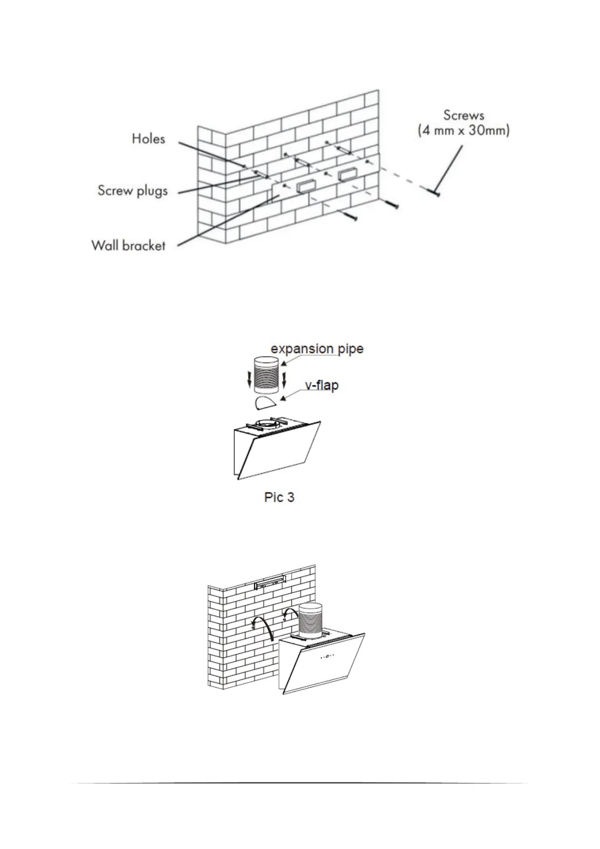 9. Install the v-flap and expansion pipe onto the cooker hood. See Pic 3.