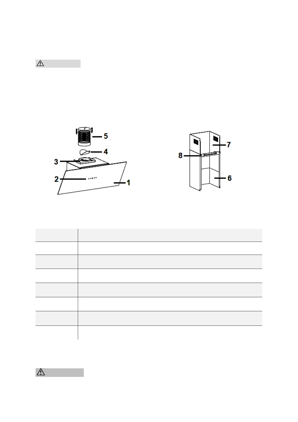 the corners and edges of the extractor hood. RISK OF BRUISES! RISK