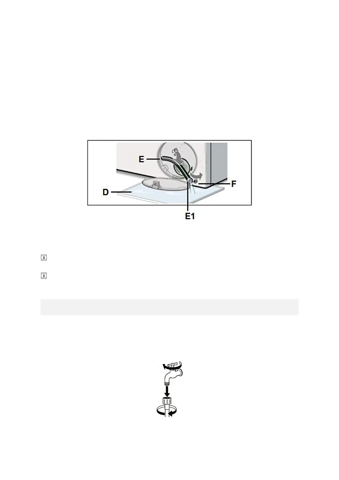 5. Legen Sie das Ende (E 1) der Wasserablaufleitung (E) in den bereitgestellten