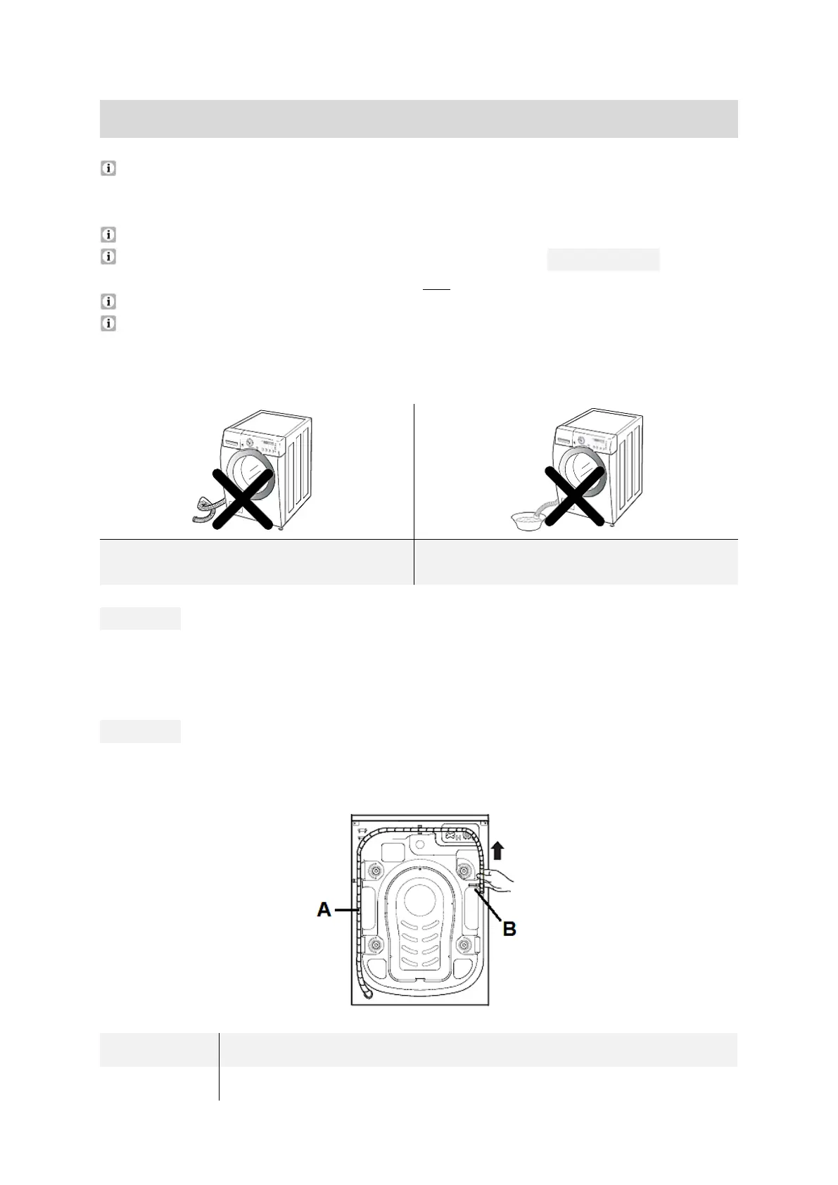 NOTICE! If the appliance is out of operation, fix the water drain hose (A)