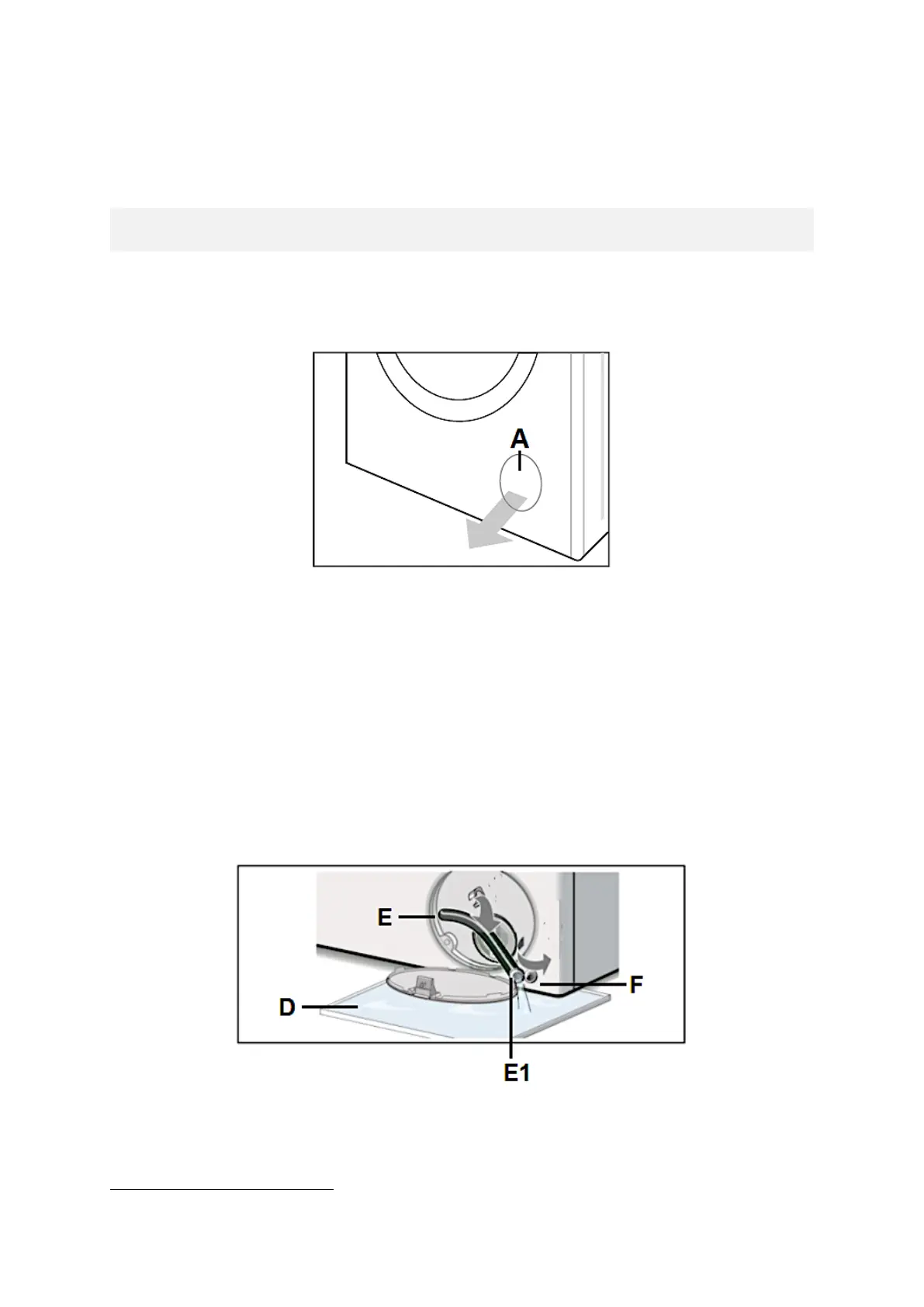10. Reattach the water drainpipe (E) properly to the appliance.