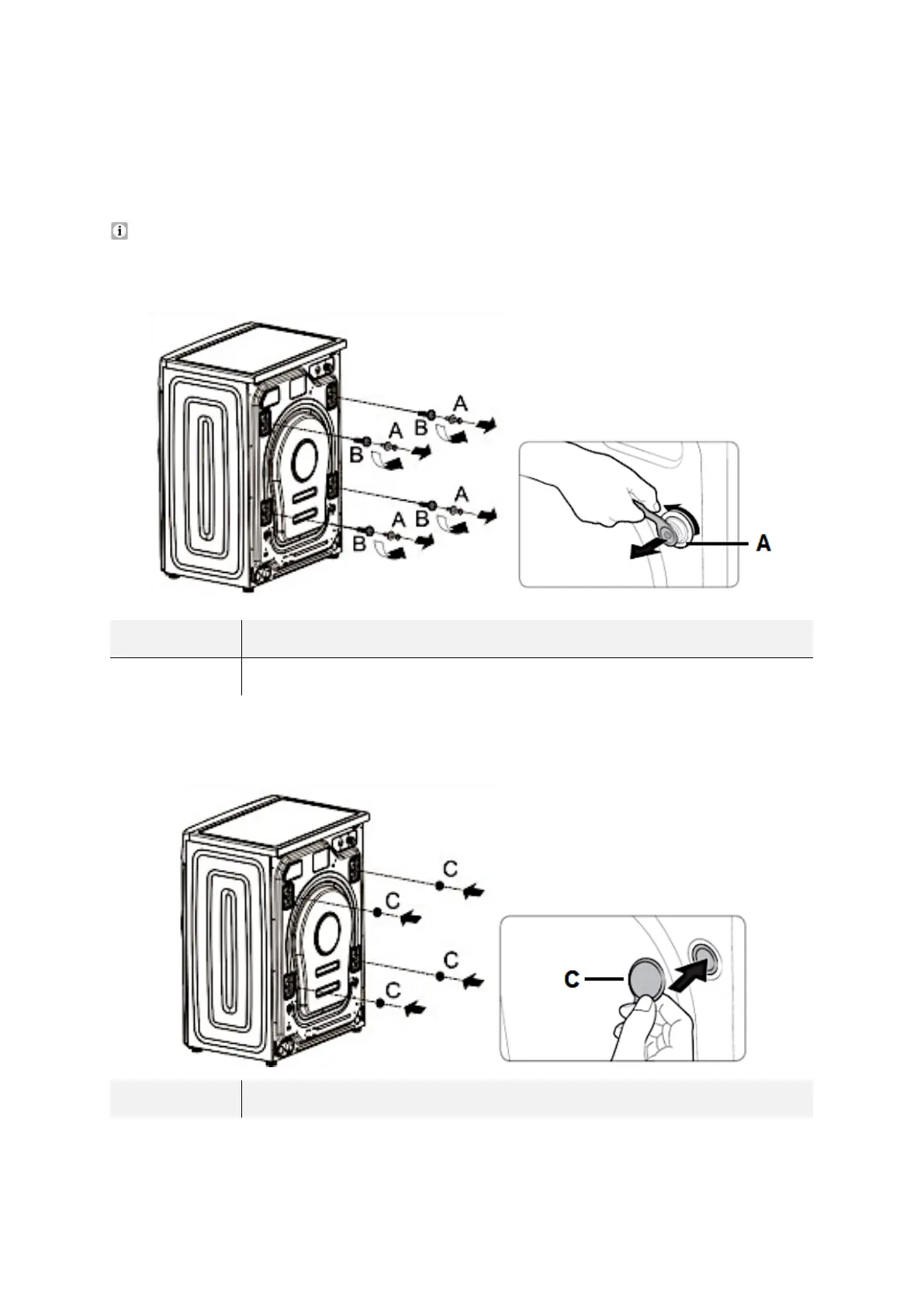 4. Bringen Sie die vier mitgelieferten Verschlusskappen (C) in die Transportbolzen-
