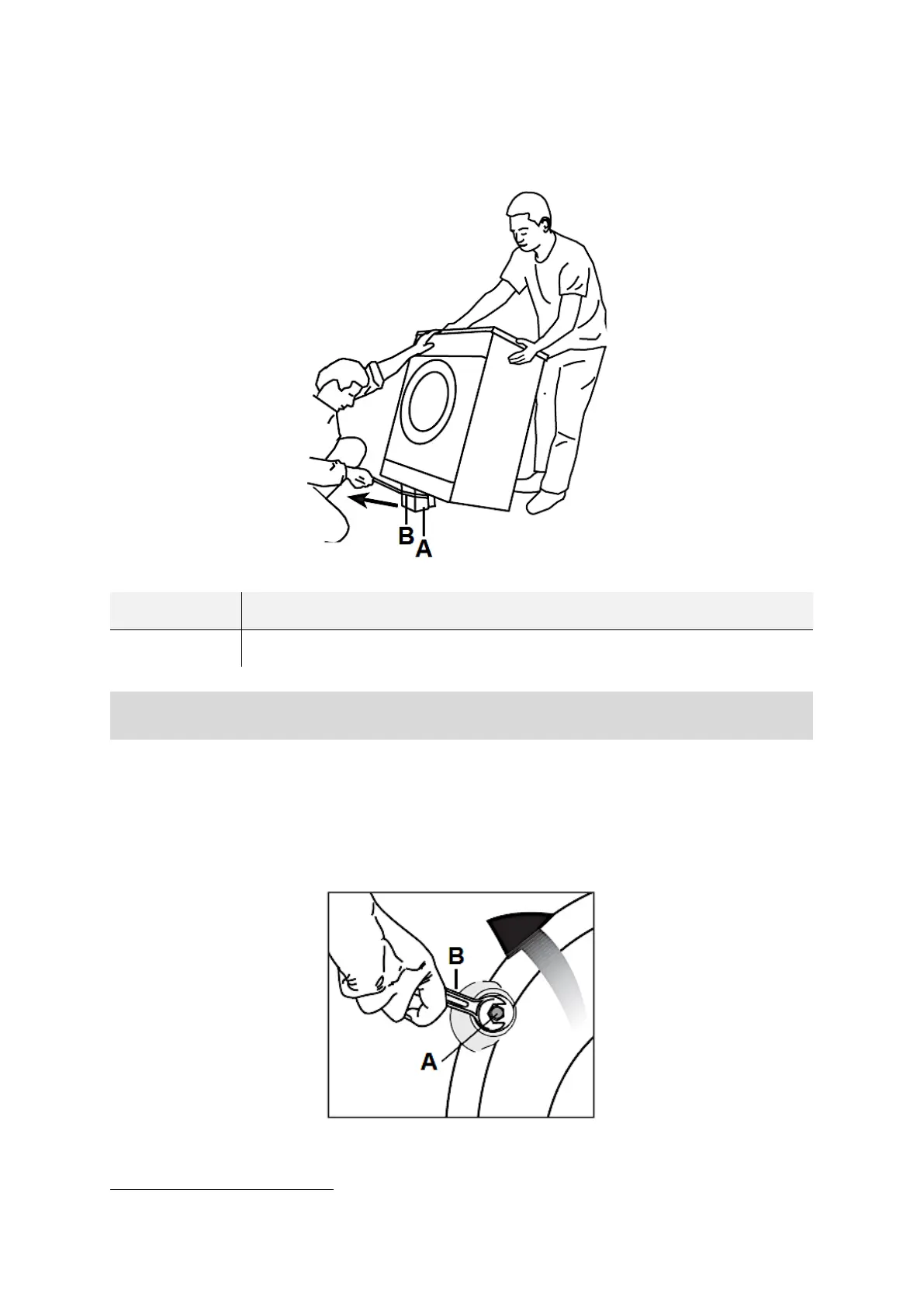 2. Lösen Sie alle Transportsicherungsbolzen (A) mit einem Schraubenschlüssel (B)