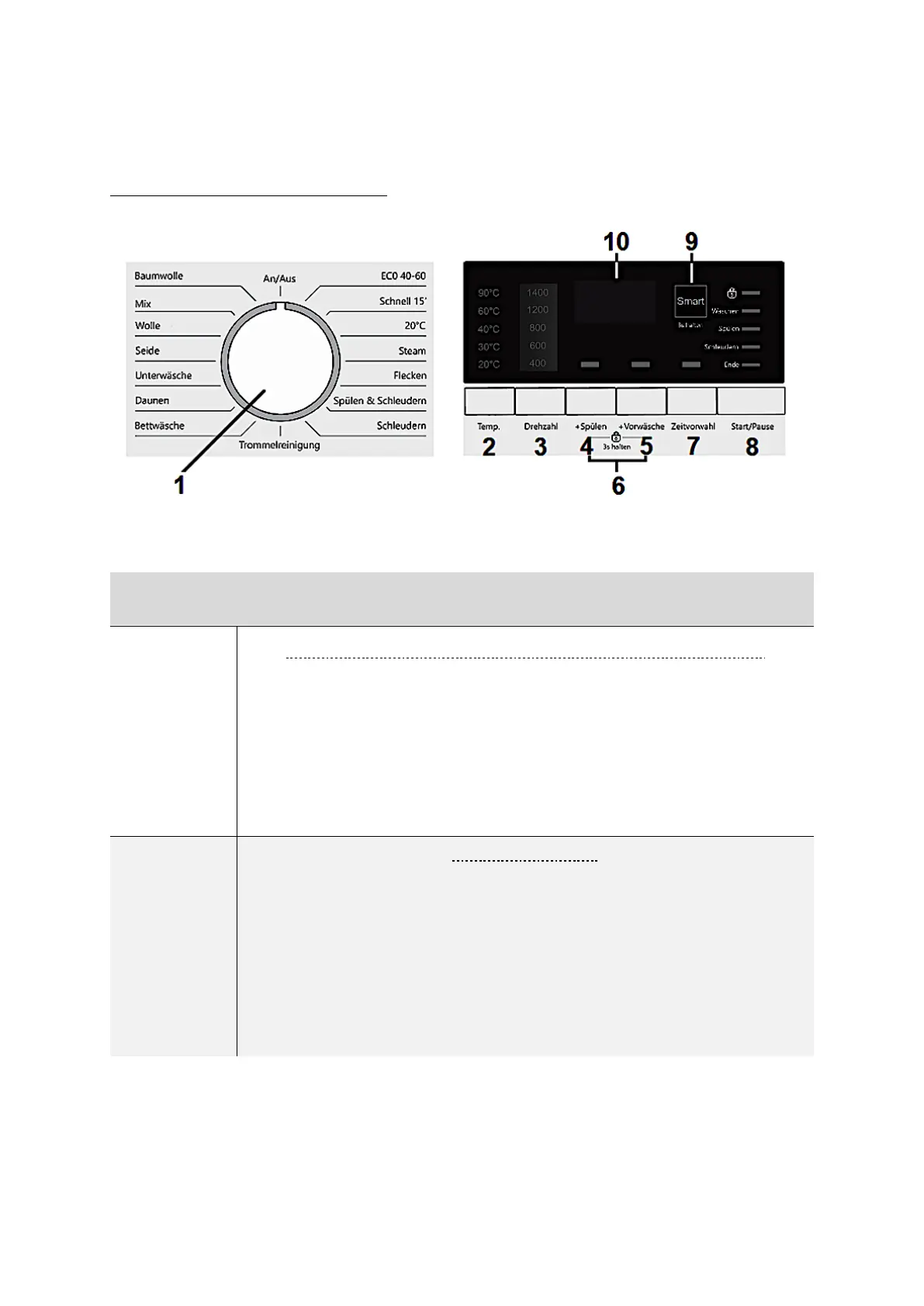 ➢ Drehschalter zur Auswahl der Waschprogramme für verschie-