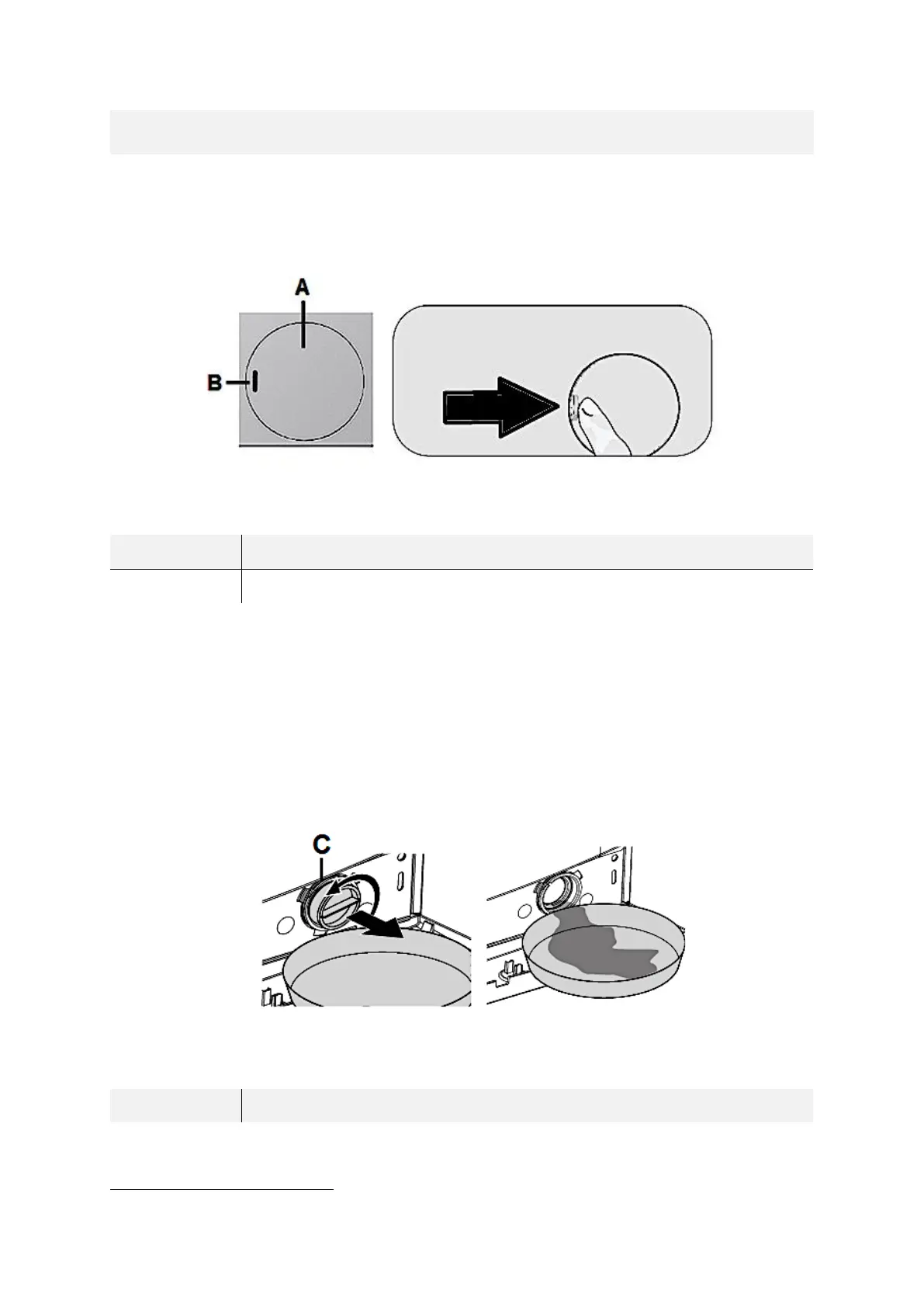 5. Öffnen Sie das Ablaufpumpensieb (C), aber entfernen Sie es nicht komplett.