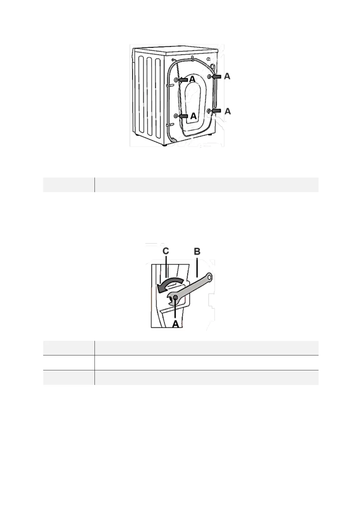 2. Lösen Sie alle Transportsicherungsbolzen (A) mit einem passenden