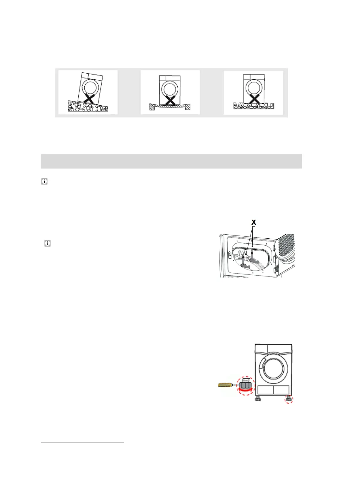 3. Sollte der Trockner nicht eben stehen, müssen die