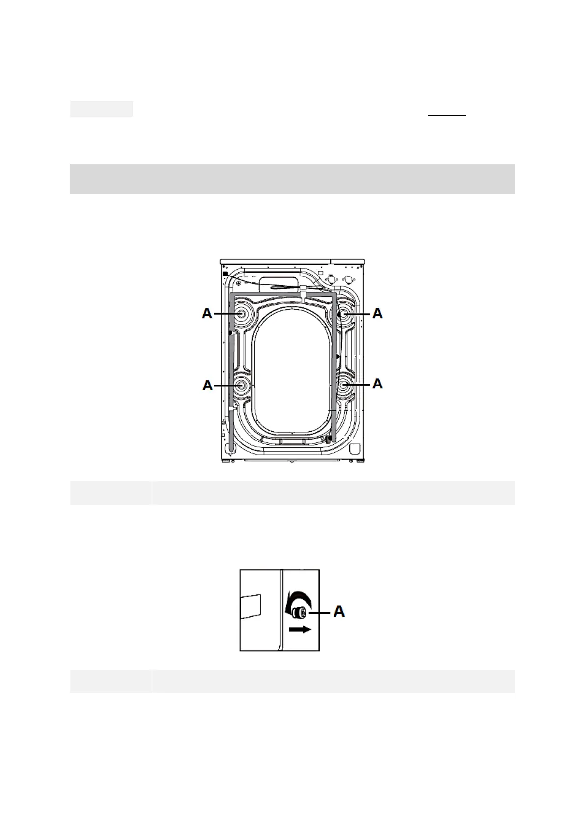 1. Die Transportsicherungsbolzen (A) befinden sich auf der Rückseite des Gerätes