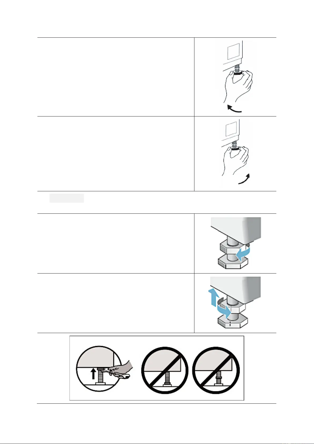 3. HINWEIS! Achten Sie beim Verstellen der Standfüße auf die