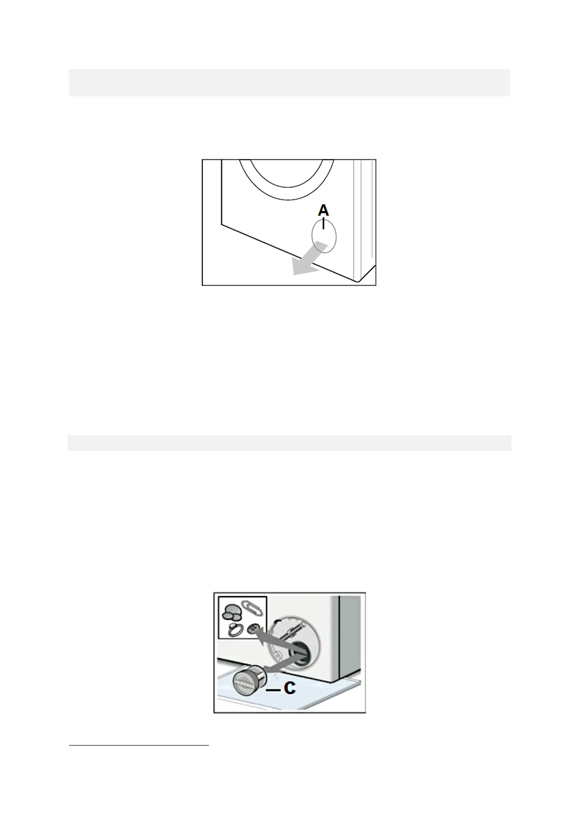 a) Öffnen Sie das Ablaufpumpensieb (C), aber entfernen Sie es nicht komplett.