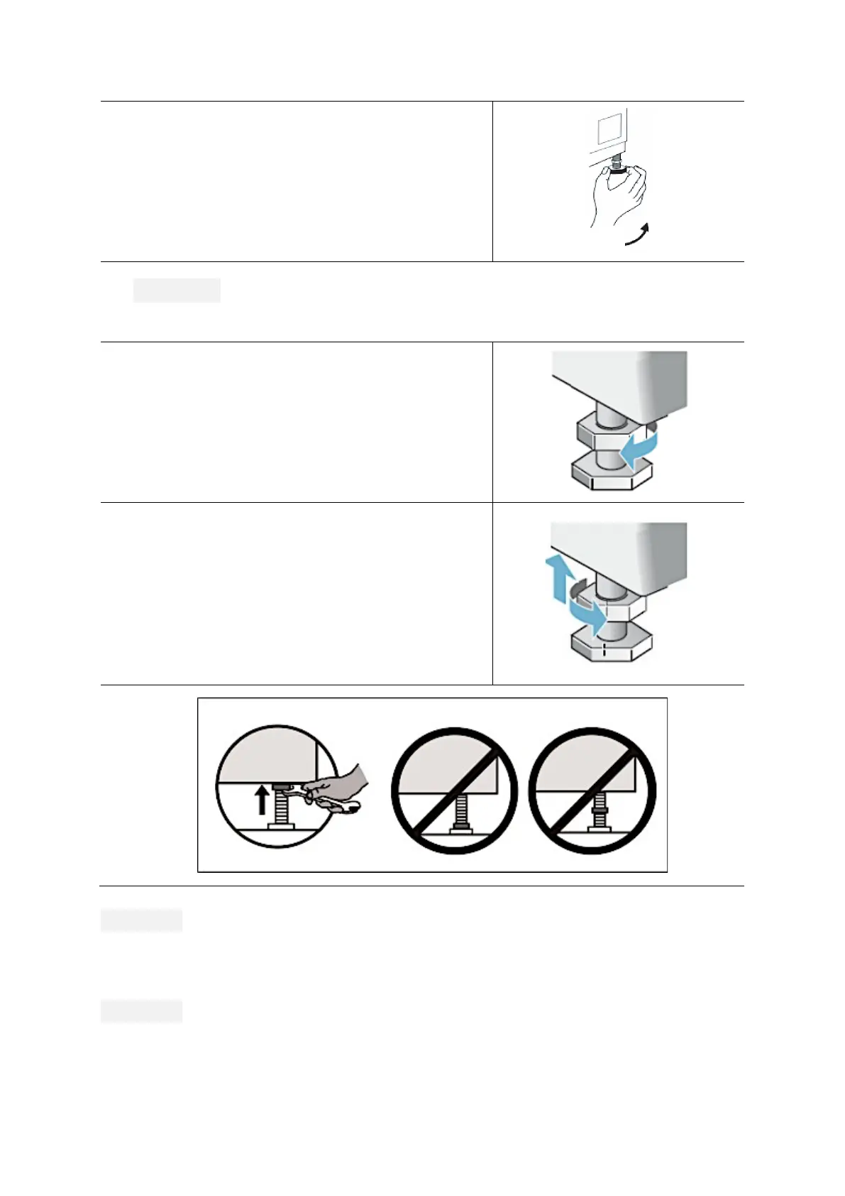 NOTICE! Do not turn the adjustable feet out further than absolutely