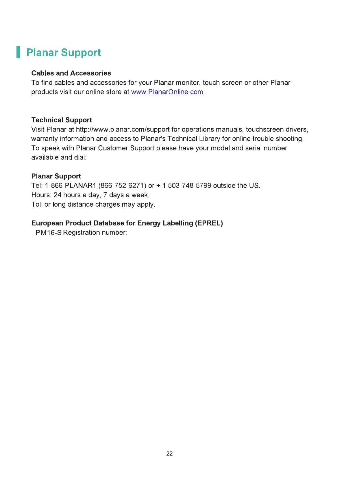 Bekijk gratis de handleiding van Planar PM16-S, stel vragen en lees de antwoorden op veelvoorkomende problemen, of gebruik onze assistent om sneller informatie in de handleiding te vinden of uitleg te krijgen over specifieke functies.