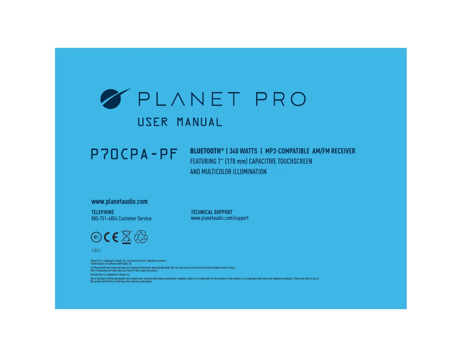 Bekijk gratis de handleiding van Planet Audio P70CPA, stel vragen en lees de antwoorden op veelvoorkomende problemen, of gebruik onze assistent om sneller informatie in de handleiding te vinden of uitleg te krijgen over specifieke functies.