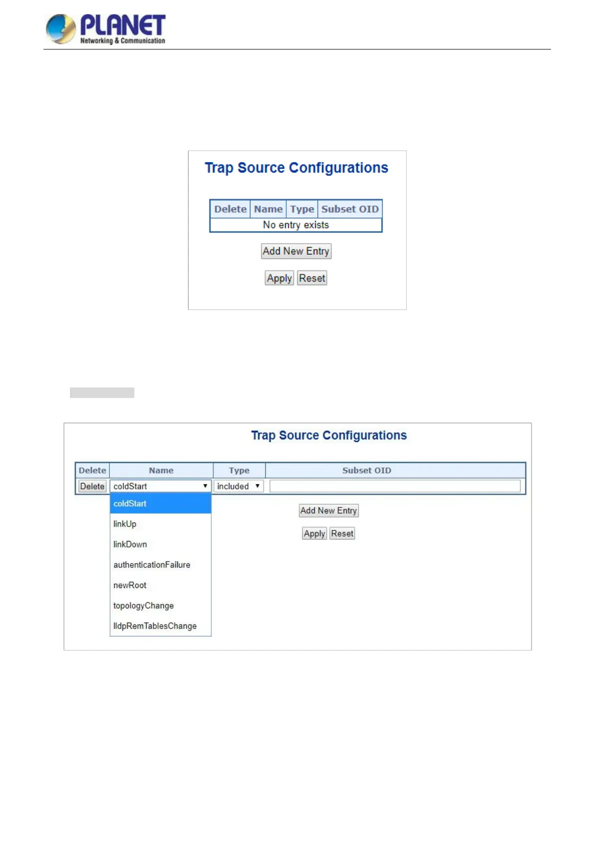Figure 4-2-2-5: SNMP Trap Source Configuration Page Screenshot