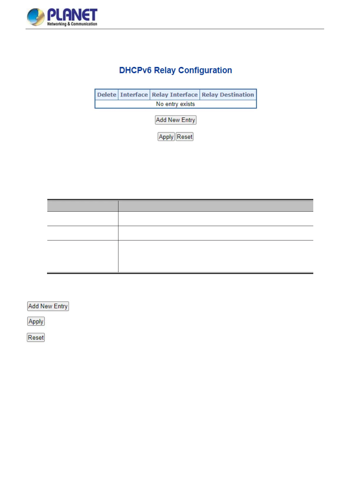 This table is used to configure DHCPv6_Relay for a specific VLAN.