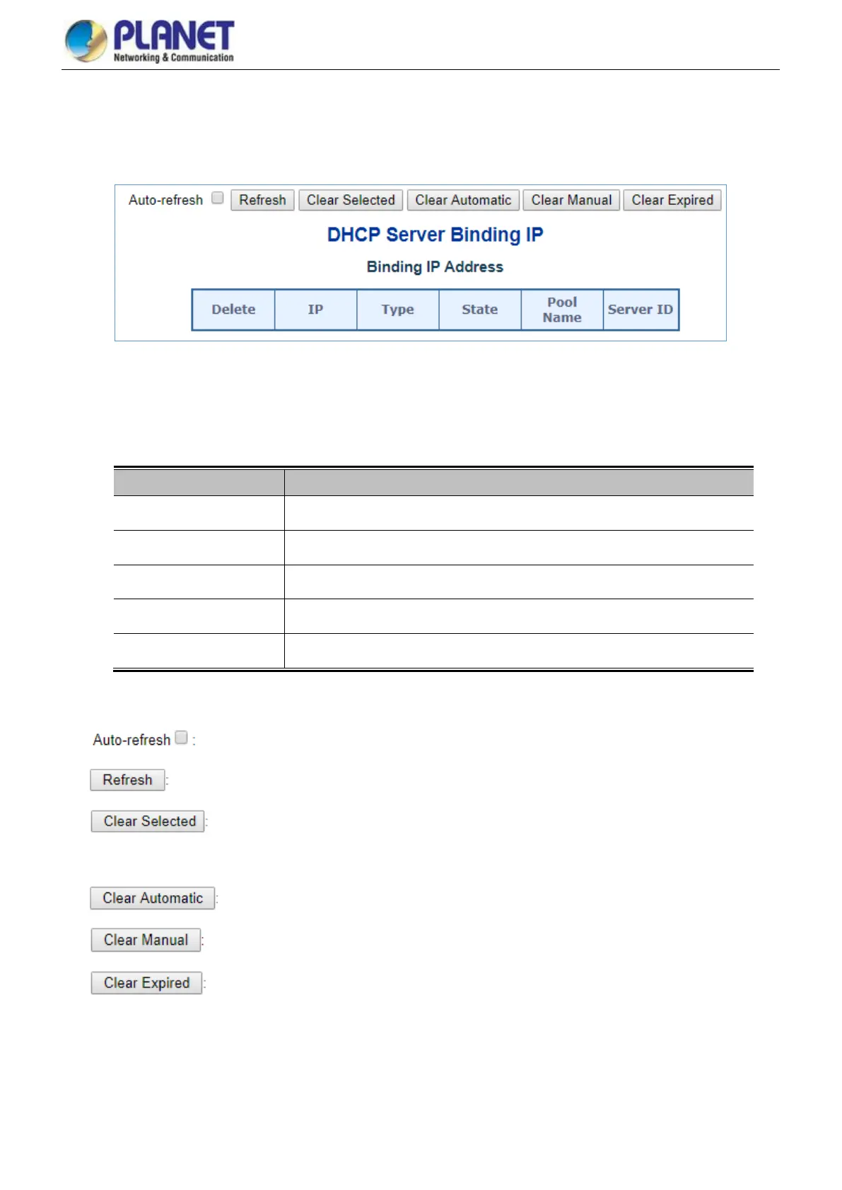This page displays bindings generated for DHCP clients. screen in Figure 4-2-5-5 appears.